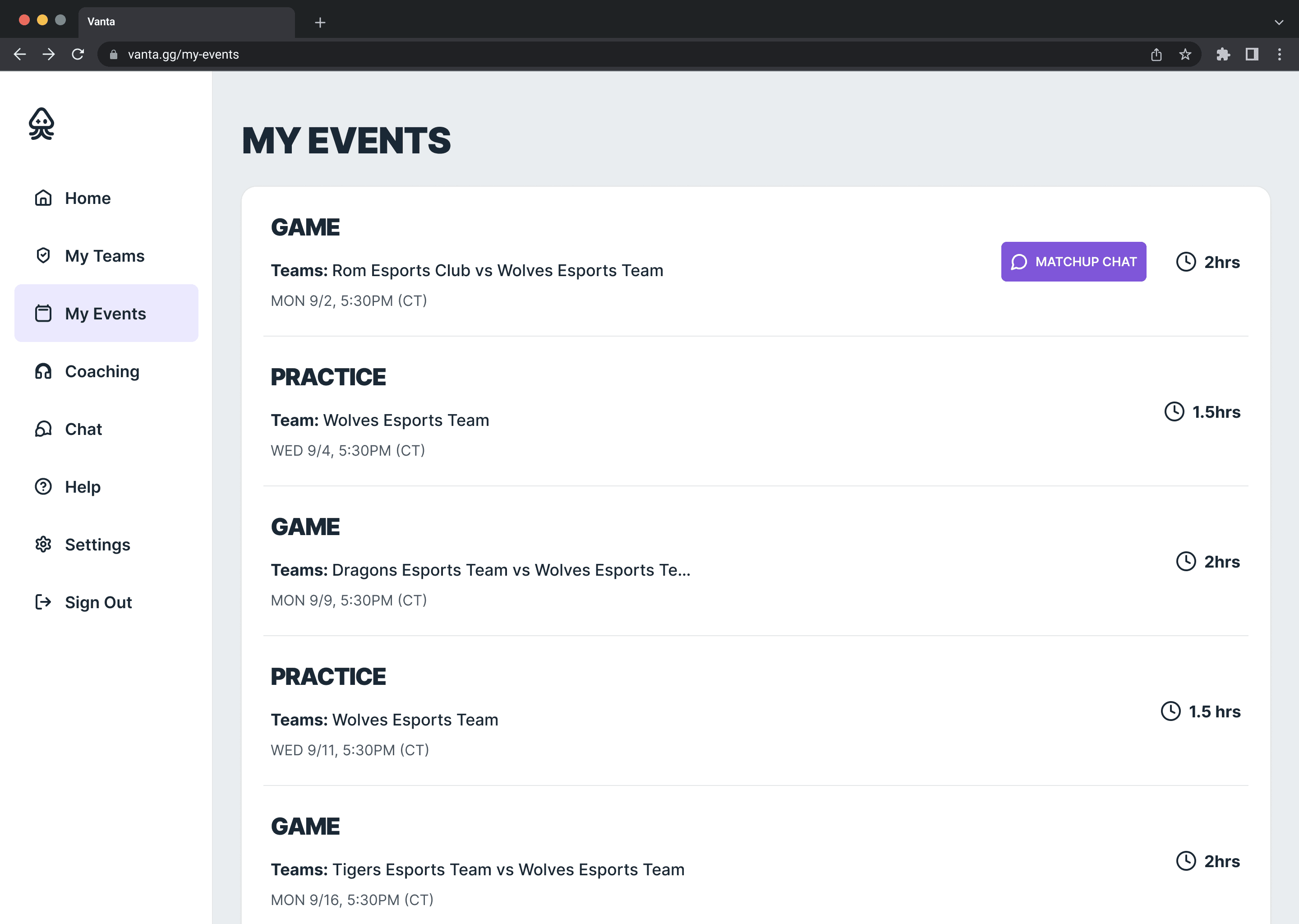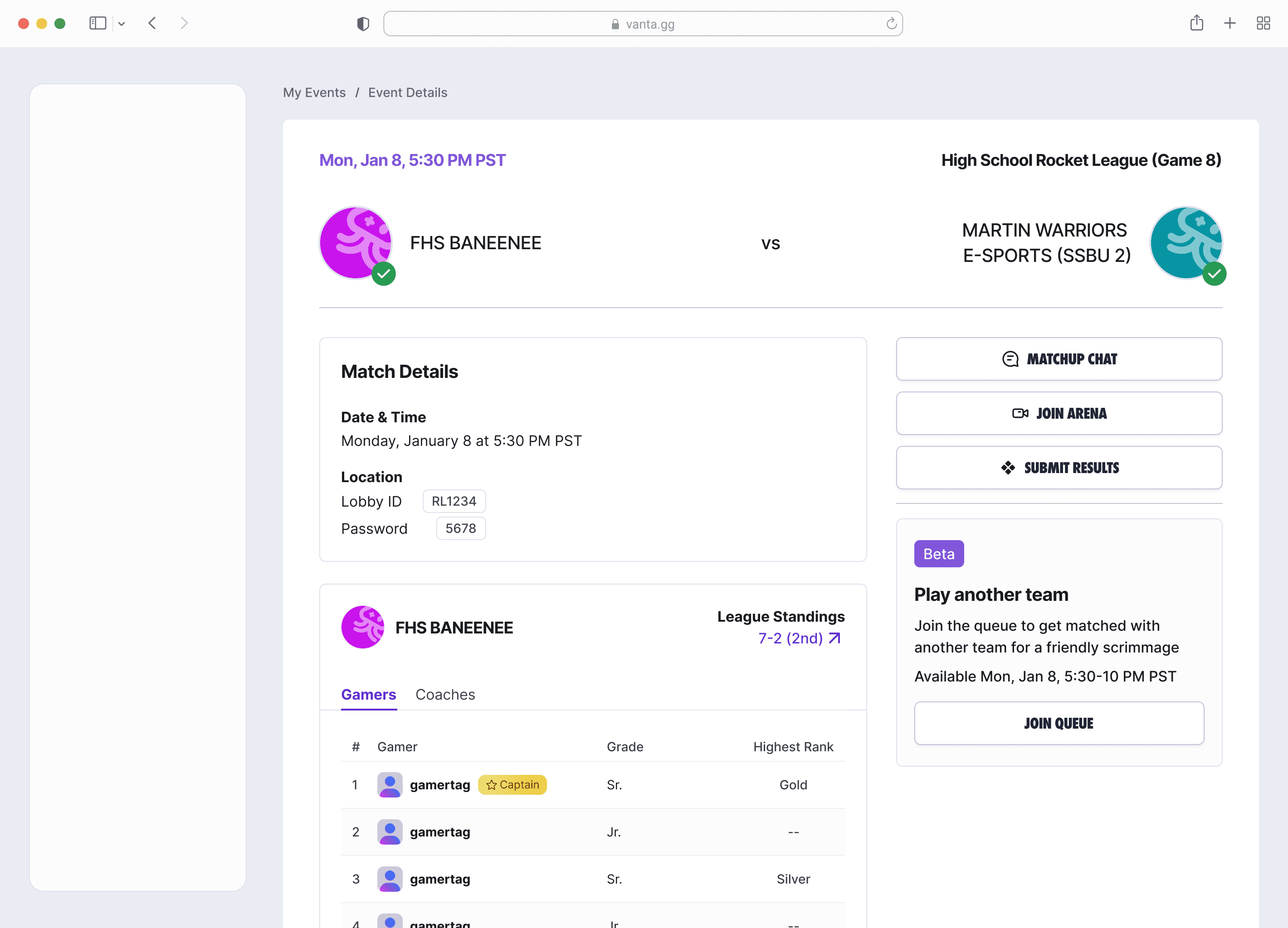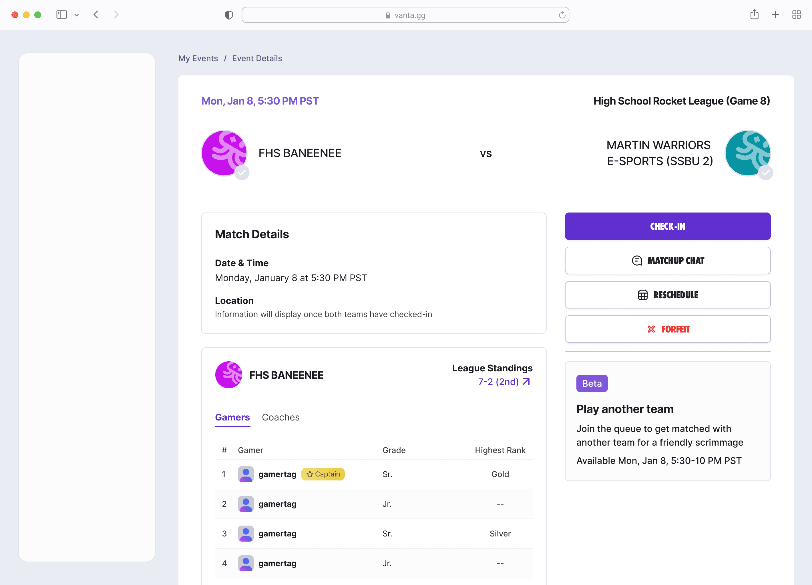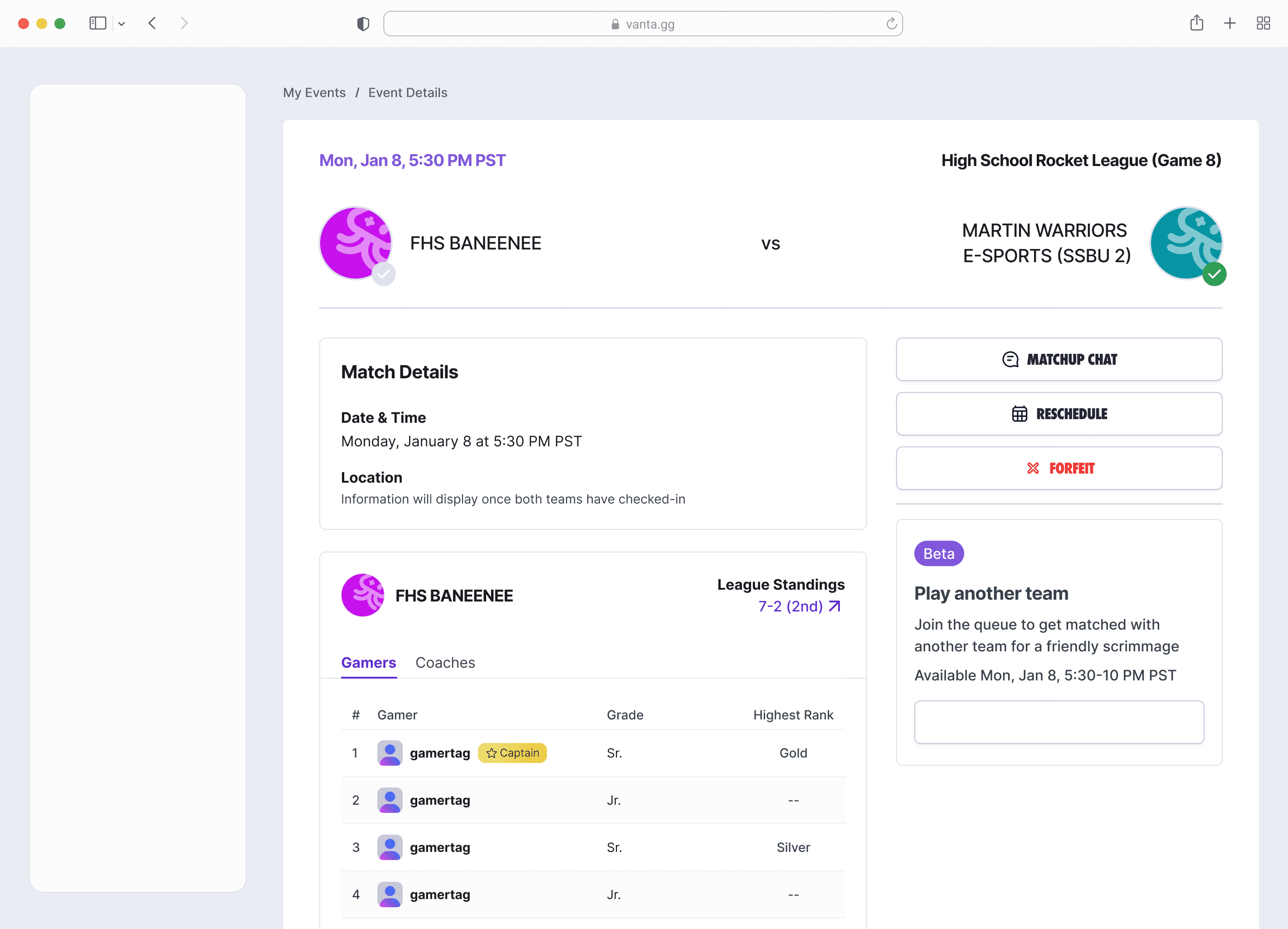 Vanta organizes tournaments for middle and high school esports teams, giving 20,000+ young gamers a safe place to compete. Over several tournaments, there was a rise in match no-shows; coaches cancel last minute without notifying their opponent.